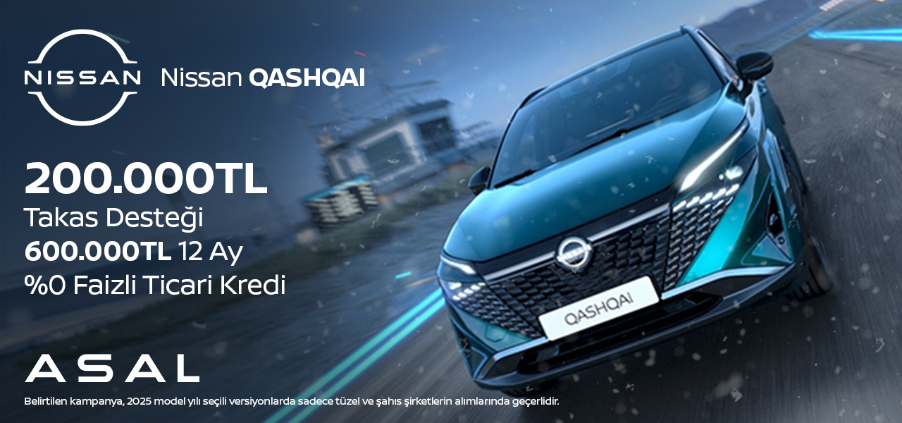 Yeni Nissan Qashqai ile Gücü Hissedin! SUV segmentinin öncüsü Nissan Qashqai, iş dünyasına özel dev avantajlarla geliyor. Mevcut aracını yenilemek isteyenler için 200.000 TL takas desteği sunulurken, finansman tercih eden tüzel ve şahıs şirketlerine özel 600.000 TL, 12 ay vade ve %0 faizli ticari kredi imkanı sağlanıyor.